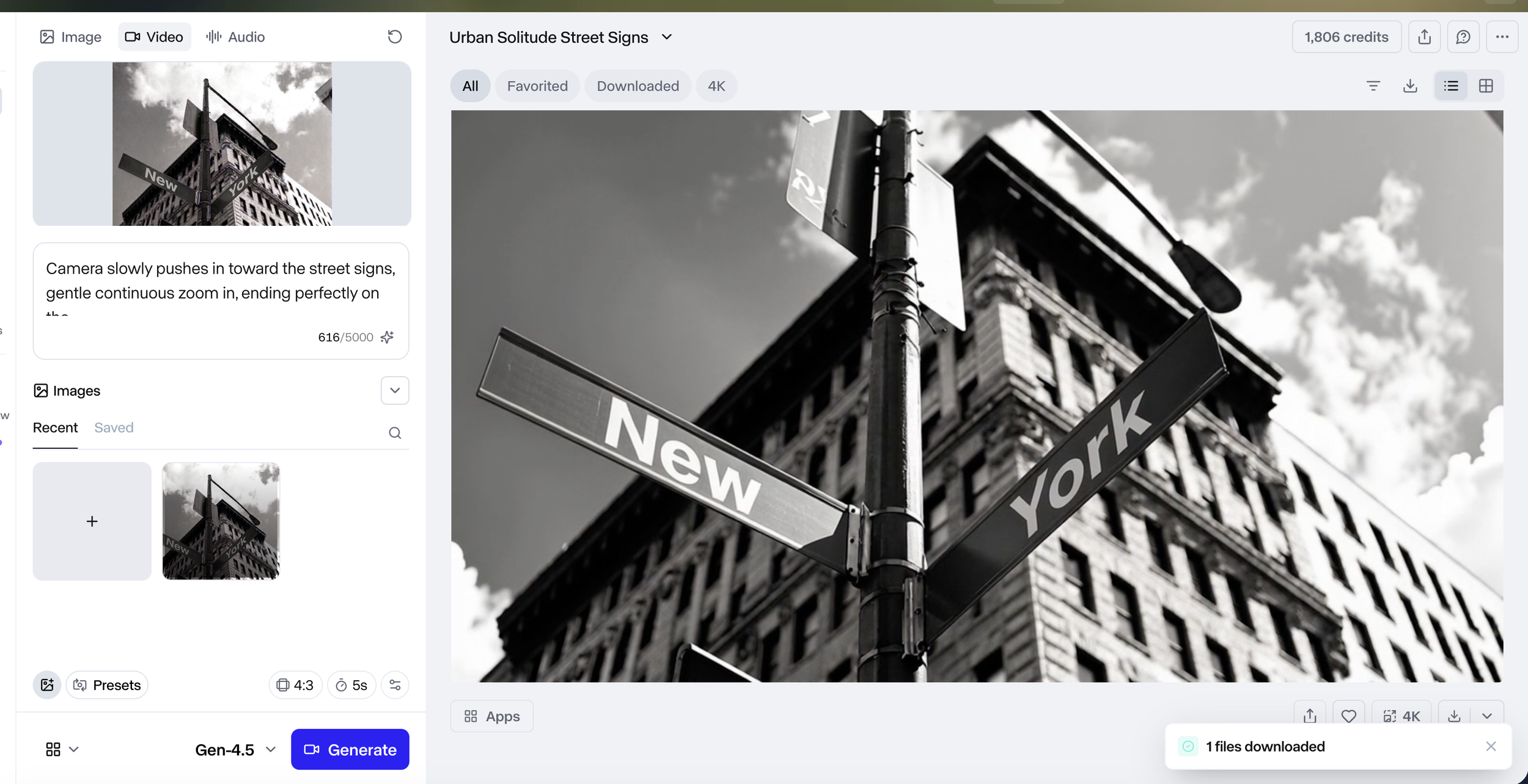 Runway Gen-4.5 -image to video generation